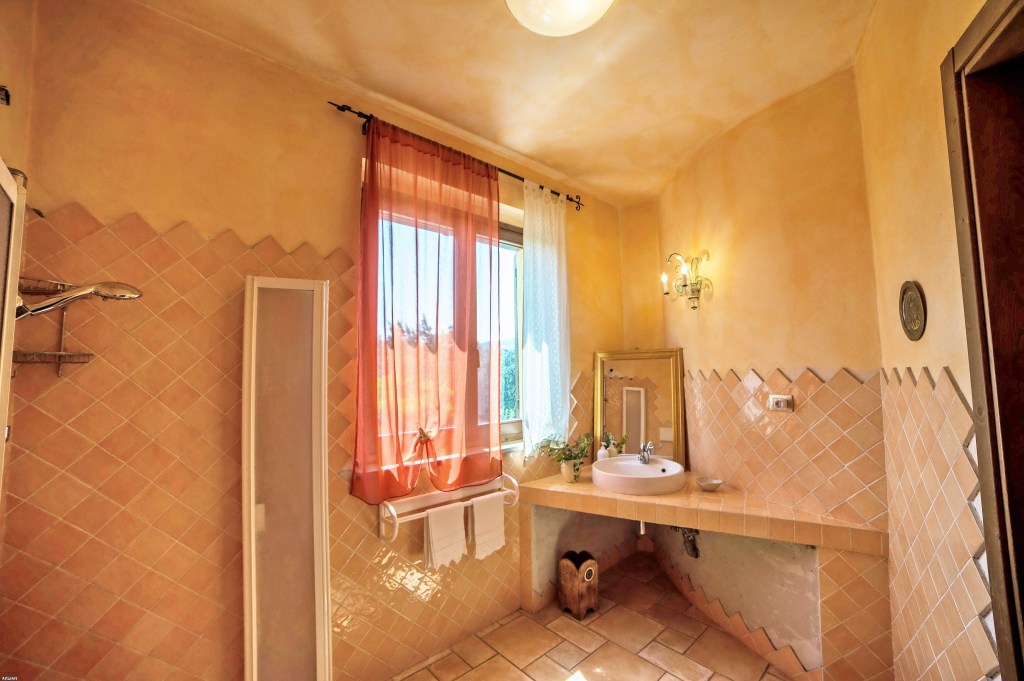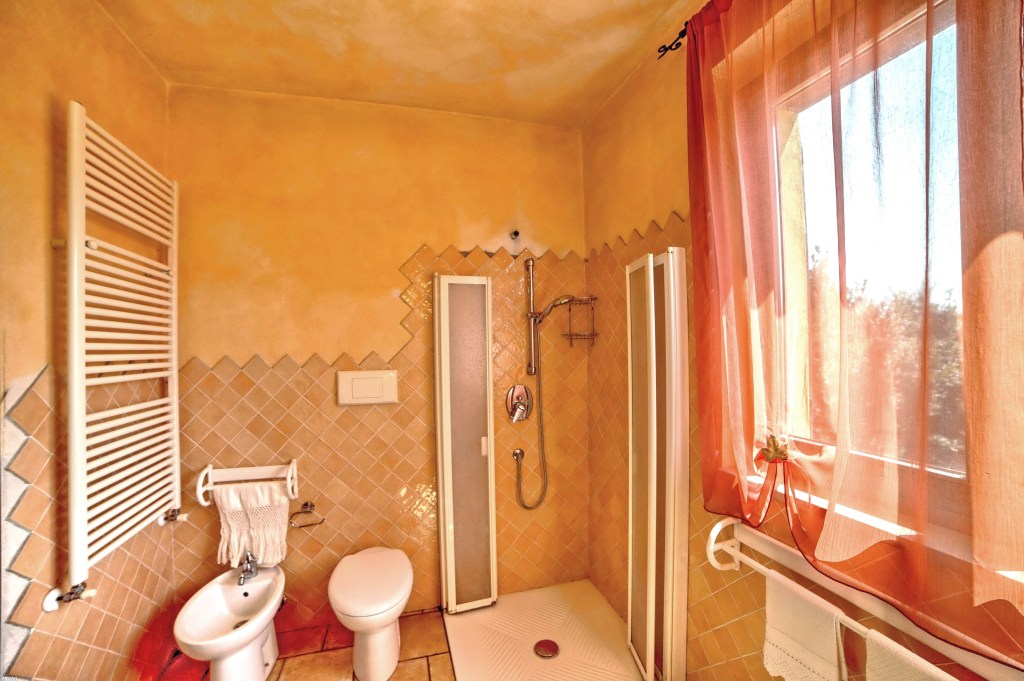 Box doccia, vasca idromassaggio, lavandino, wc, bidet. Si trova al primo piano.