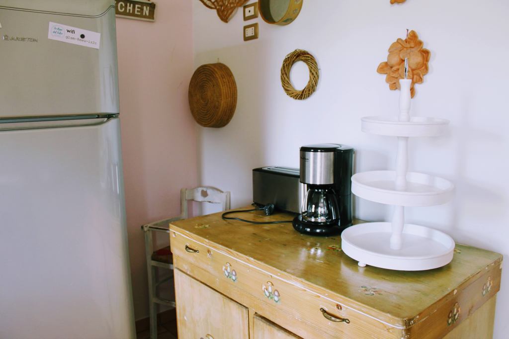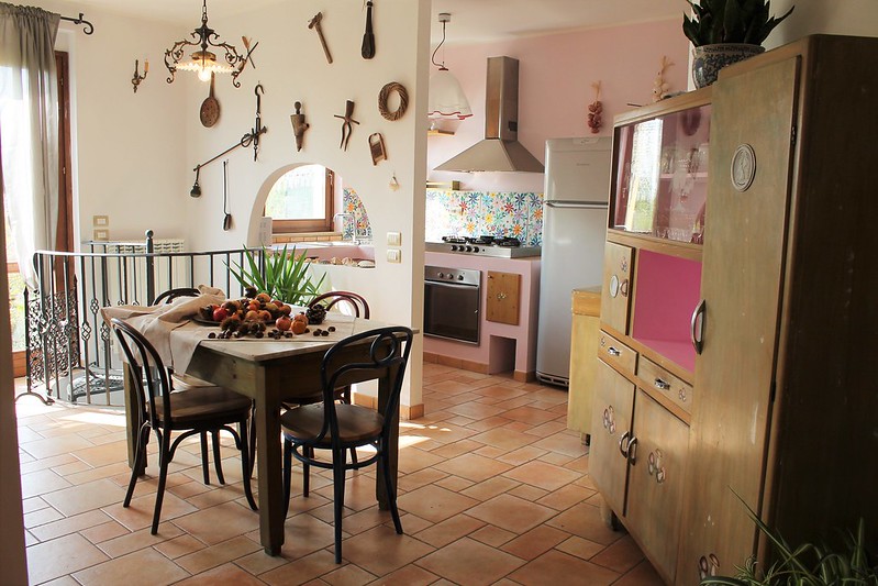 La Cucina è attrezzata per rispondere a tutte le tue esigenze (grande piano cottura con 4 fuochi, forno elettrico, forno a microonde, frigorifero, tostapane, moka, macchina caffè americano, bollitore). Dispone di tutti i coperti necessari (fino a 11 persone), stoviglie, pentole, padelle, teglie etc per preparare pranzi e cene. Dispone di un tavolo di servizio per 6 persone. Per grandi gruppi consigliamo l’utilizzo del grande tavolo della sala da pranzo dei tavoli da esterno.